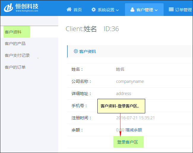 使用此功能可登錄用戶的會員中心,幫助用戶代爲操作。