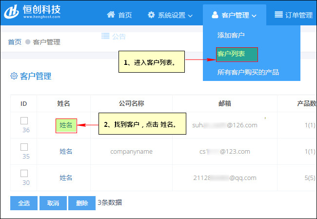 一、登錄平臺,頂部導航欄 客戶管理,進入 客戶列表。找到用戶,點擊用戶 姓名,進入 客戶資料 頁面。